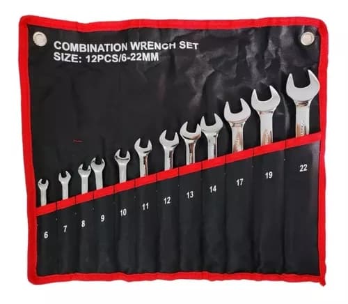 ESTABLE: El juego de llaves de boca está hecho de acero al cromo vanadio, lo que habla de estabilidad y de una larga vida útil. PRÁCTICO: El juego de llaves combinadas de 12 piezas viene con una práctica bolsa enrollable, que puede colgarse fácilmente en la pared utilizando los ojales, o enrollarse y guardarse para ahorrar espacio, por ejemplo, en una caja de herramientas. VERSATILIDAD: Este juego de llaves cubre los tamaños 6-22mm y es ideal para el uso diario. BIEN ENSAMBLADA: Gracias al etiquetado fácil de leer en la bolsa enrollable, siempre tendrá una visión general y podrá encontrar la llave correcta con un solo movimiento de muñeca. DATOS TÉCNICOS: Material: Acero al cromo vanadio, Tamaños: 6mm, 7mm, 8mm, 9mm, 10mm, 11mm, 12mm, 13mm, 14mm, 17mm, 19mm, 22mm SET 2: Cromo vanadio/12 piezas. 6mm / 7mm / 8mm / 9mm / 10mm / 11mm / 12mm / 13mm / 14mm / 17mm / 19mm / 22mm