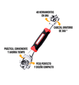 Diseño único Herramienta que combina 48 herramientas en una y hace que cualquier reparación sea rápida y fácil. ¡Simplemente haciendo clic entre las diferentes dimensiones, inmediatamente tendrá la herramienta necesaria para el trabajo! Portabilidad fácil Herramientas de hardware portátiles profesionales con peso perfecto y diseño compacto. Rápido Los tensores giratorios multirrotores ajustables reducen la intensidad del trabajo del operador. La cabeza se puede girar 360°. Haga clic en un ángulo de 45 grados para elegir el que se adapte a sus necesidades, mejorar la eficiencia. Proceso preciso Resistente a la corrosión, buena tenacidad, alto par y larga vida. Aplicación Diseño ingenioso, práctico y robusto, especialmente para operaciones a gran altitud, también se puede aplicar a industrias, automóviles, familias, edificios, etc.