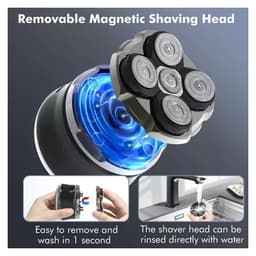 Máquina de Afeitar Eléctrica RQ518 5 Cabezales Giratorios Recargable La afeitadora eléctrica RQ518, equipada con 5 cabezales giratorios, es la herramienta ideal para rasurar y perfilar la cabeza y el rostro con precisión, sin irritación. Gracias a su diseño liviano y fácil de manejar, esta afeitadora se adapta a la curvatura de tu cabeza, permitiendo un corte cómodo y eficaz. Con su tecnología avanzada, garantiza un afeitado de alta calidad en cualquier dirección, lo que la convierte en la opción perfecta para quienes buscan un rasurado impecable. Además, al ser inalámbrica y recargable, puedes usarla con total libertad en la comodidad de tu hogar. Con una batería de litio de larga duración, disfrutarás de hasta 120 minutos de uso continuo. Características: • 5 cabezales giratorios para un afeitado preciso • Diseño liviano y fácil agarre • Ideal para afeitar cabezas y repasar zonas difíciles del rostro • Inalámbrica y recargable para mayor comodidad • Batería de litio de 1200 mAh • 2 niveles de intensidad • Tiempo de carga: 120 minutos • Tiempo de uso: Aproximadamente 120 minutos • Voltaje de entrada: 5V • Color: Negro con gris • Modelo: RQ518